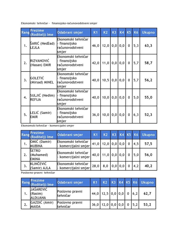 Rang liste primljenih učenika nakon završenog drugog upisnog roka nalazi se u prilogu.